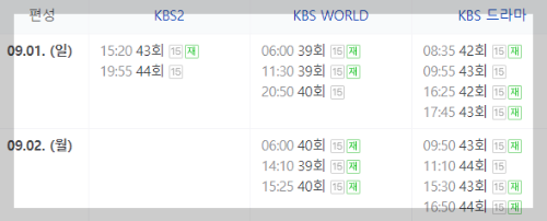 43회 재방송은 9월 1일 오전 9시 55분 KBS 드라마 채널에서 시청하실 수 있습니다.